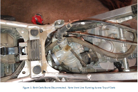 - Properly route the 3 carburetor vent lines down and through the area in front of the swingarm.