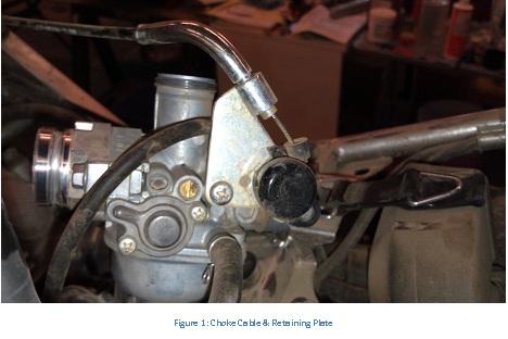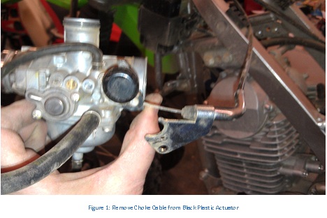 - Remove choke cable from black plastic choke actuation mechanism.