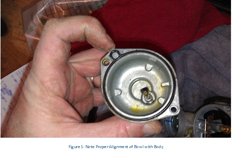 - Replace the float mechanism. Ensure the float needle is properly located. (You will test it for proper function later).