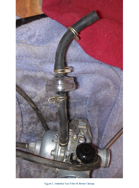 I have two 2009 Kawasaki KLX 140 motorcycles for the kids. They are jetted extremely lean, making them hard to start and slow to warm up. In addition, the fuel screw is not adjustable from the factory. There are some posts on the web discussing what upgrades work, but no installation guides. Below are instructions to upgrade the pilot jet, main jet, fuel screw, and add a fuel filter.