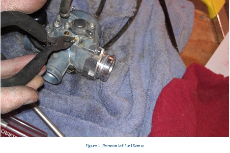 - Tune the fuel screw (there are lots of articles on this on the internet). With the warm and running, turn in the fuel screw until it nearly kills the engine. Then open it slowly until the speed peaks. I usually go back in ¼ to ½ turn from this point. On both bikes, this point was at 1.5 turns out from seated.