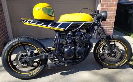 Below before and after Jason C. 81 Yamaha xj750 cafe racer. That's a one off hand formed tail from EPS foam then coated with Epoxy resin, then prepped and painted. Battery is in the tail and all electrics are concealed under the seat. Before and after.